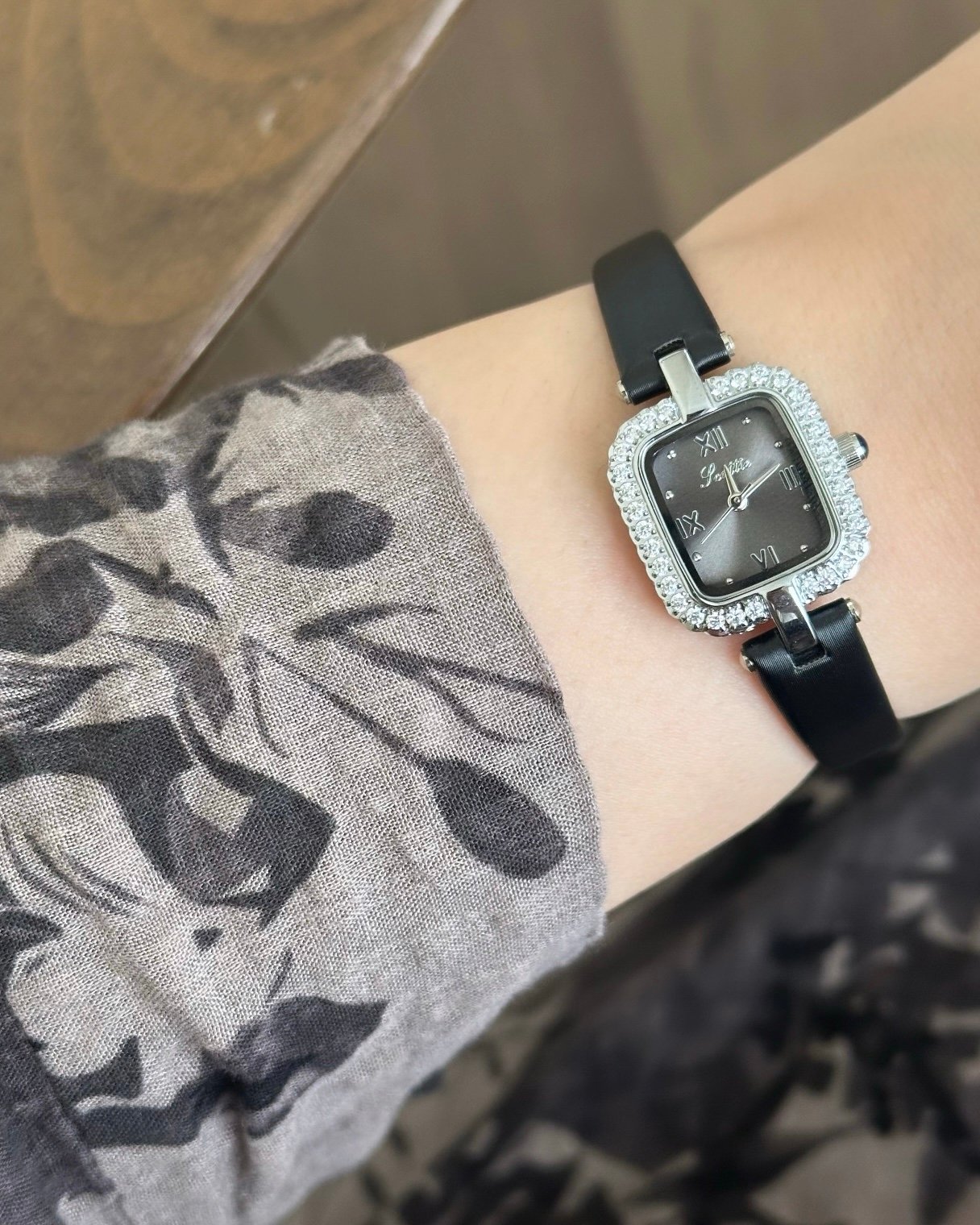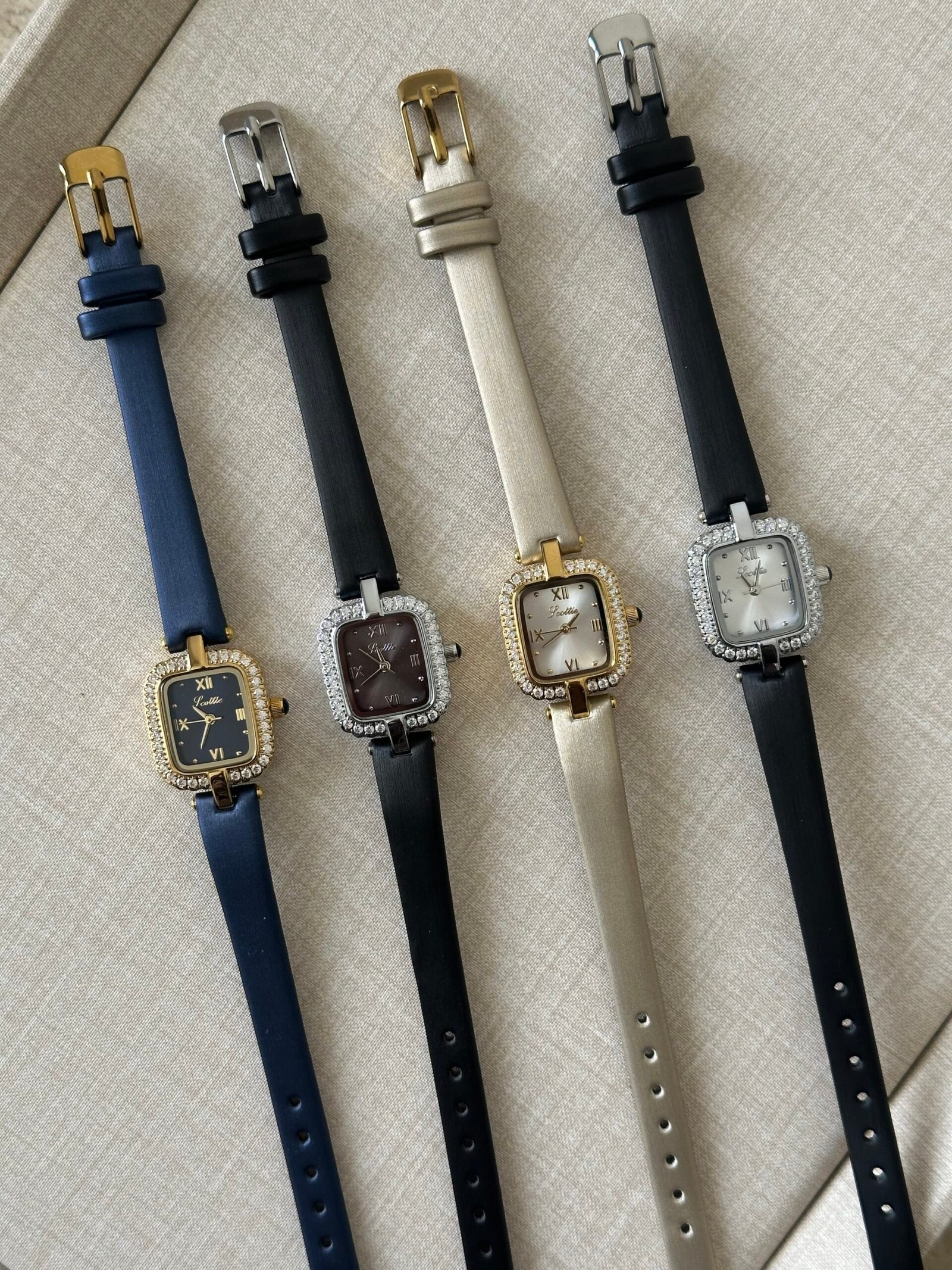Elegant women’s watches with a luxurious satin leather strap and a bejeweled bezel,