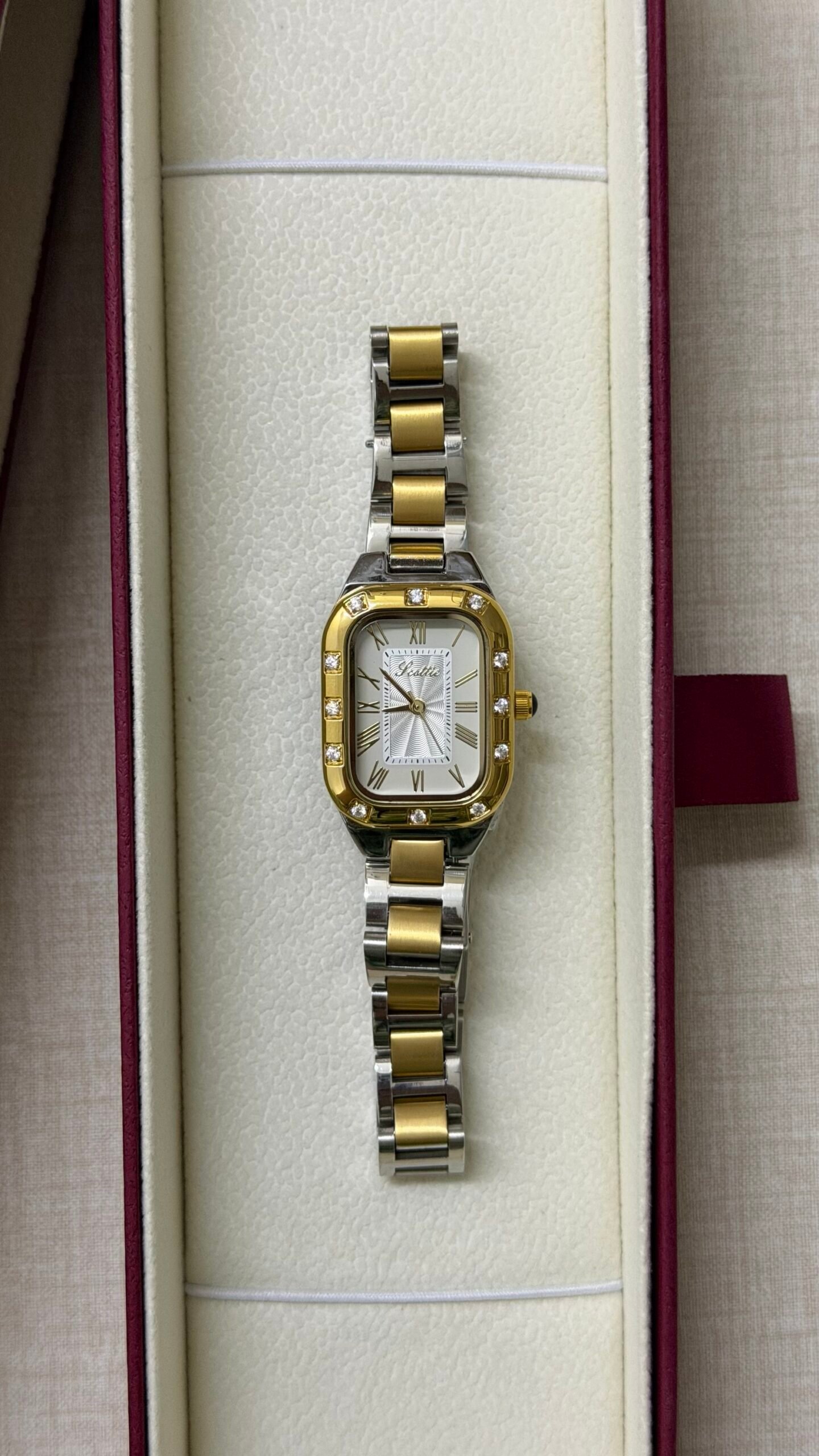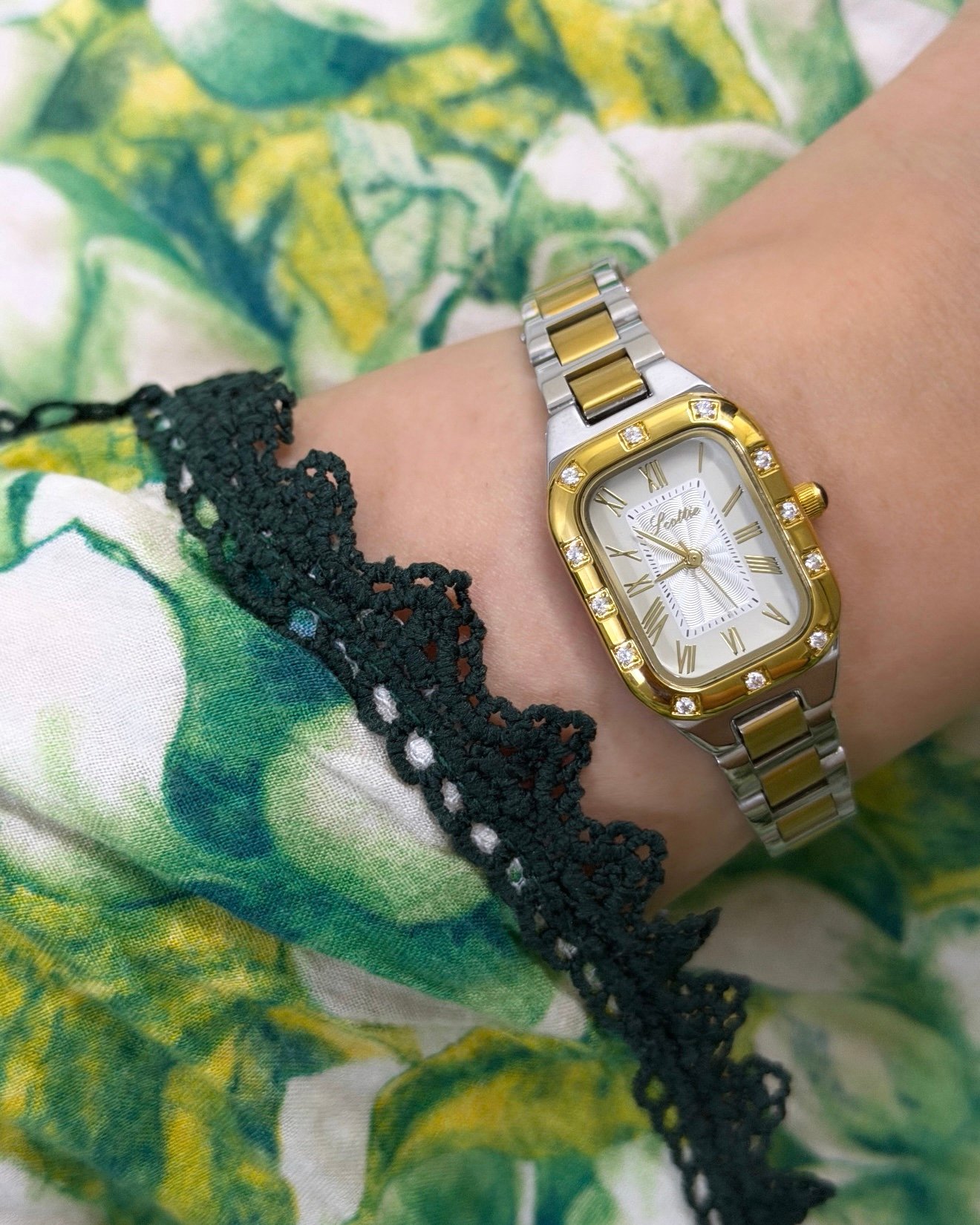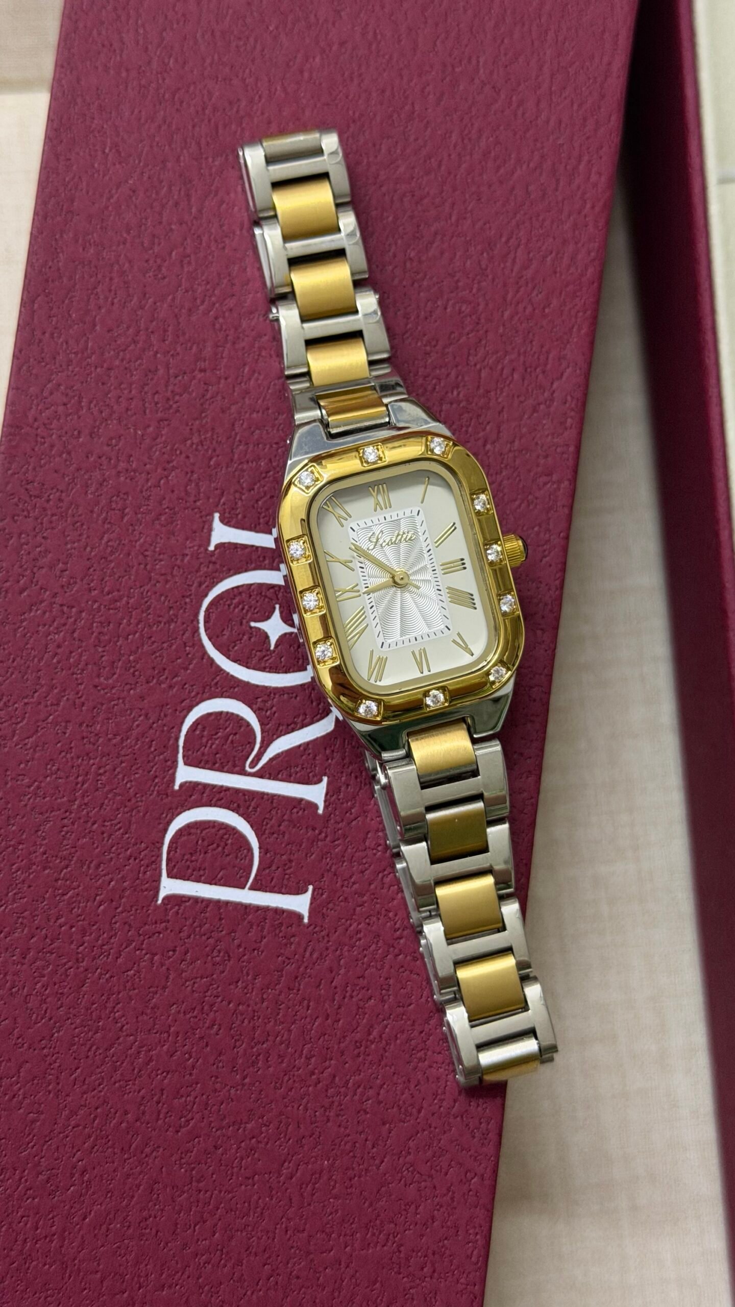 A luxurious watch with a two-tone gold and silver design, shining with classic elegance